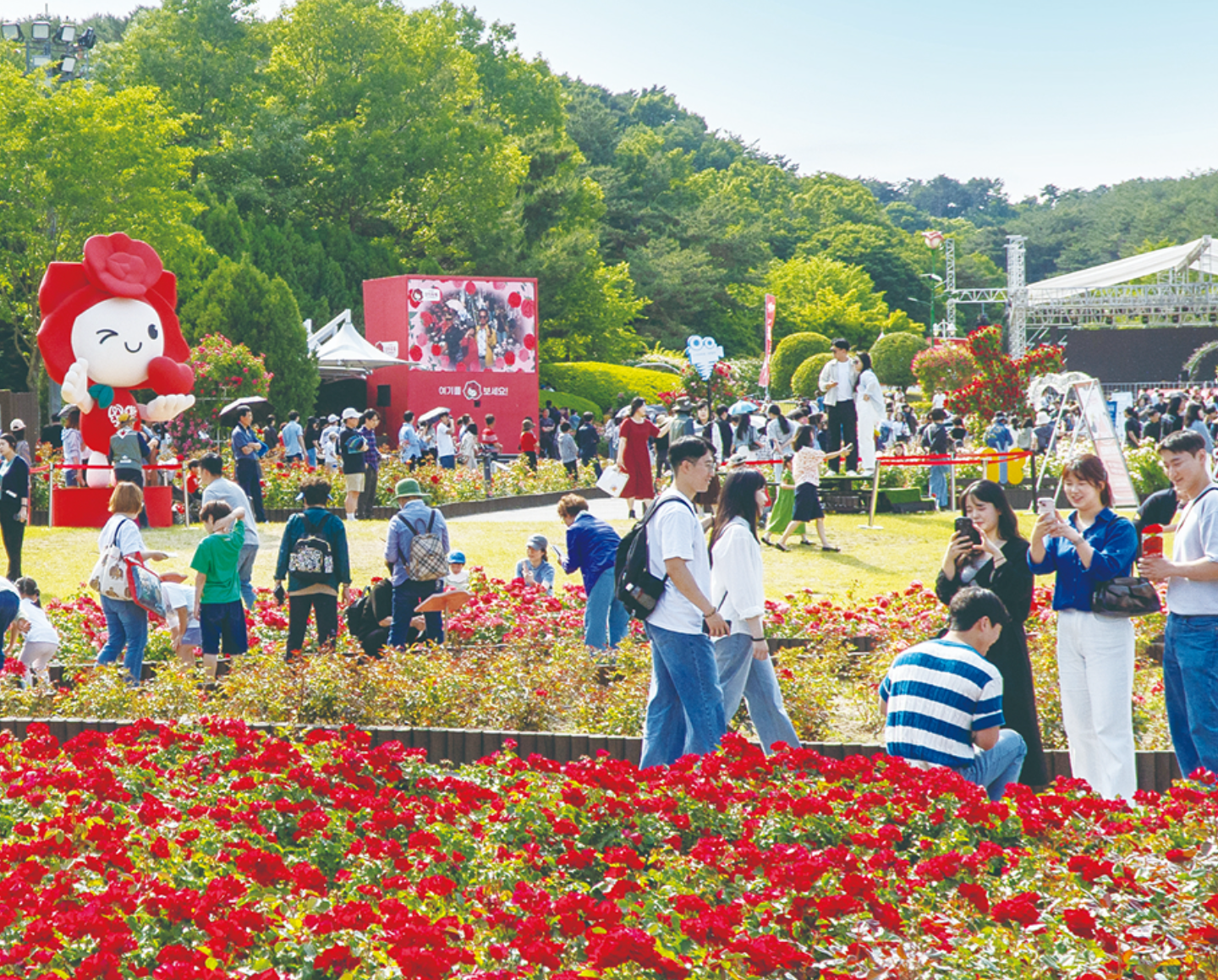 축제 기간 동안에는 로즈밸리 콘서트, 거리 퍼레이드, 매직쇼 등 다양한 공연이 진행되며, 어린이장미원, 전시·체험공간, 푸드트럭, 생태여행관, 키즈테마파크 등 가족 단위 방문객을 위한 프로그램도 풍성하게 마련되어 있습니다. 특히, SK광장에서는 인기 캐릭터 '티니핑'과 함께하는 팬미팅과 포토존이 운영되어 어린이들에게 큰 인기를 끌 것으로 예상됩니다.