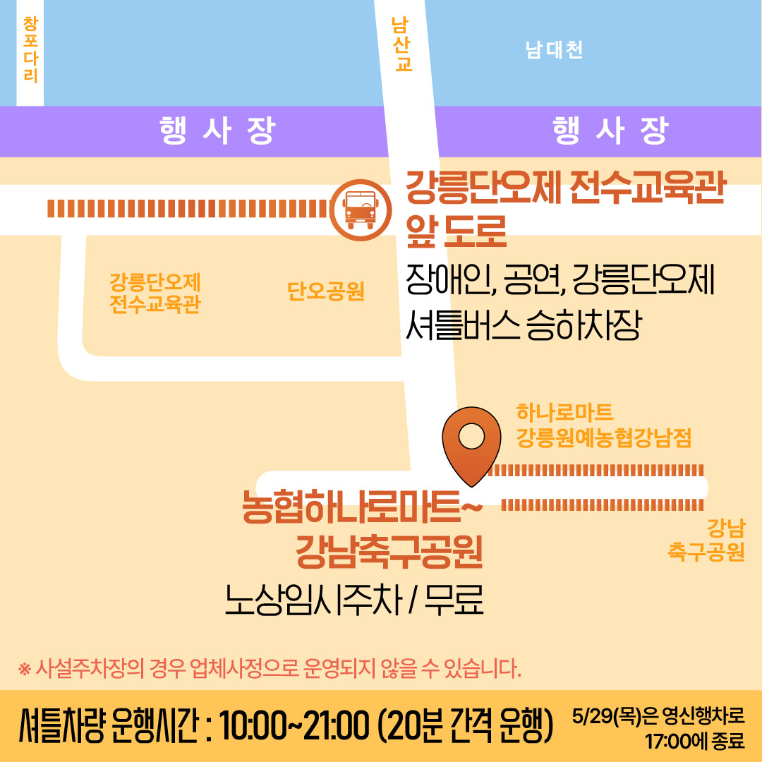 • 장소: 강원특별자치도 강릉시 단오장길 1 / 남대천 일대