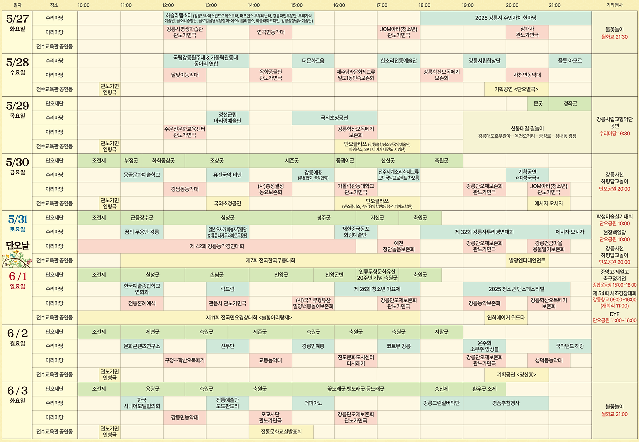 • 강릉농악경연대회: 5월 31일(토) 10:00