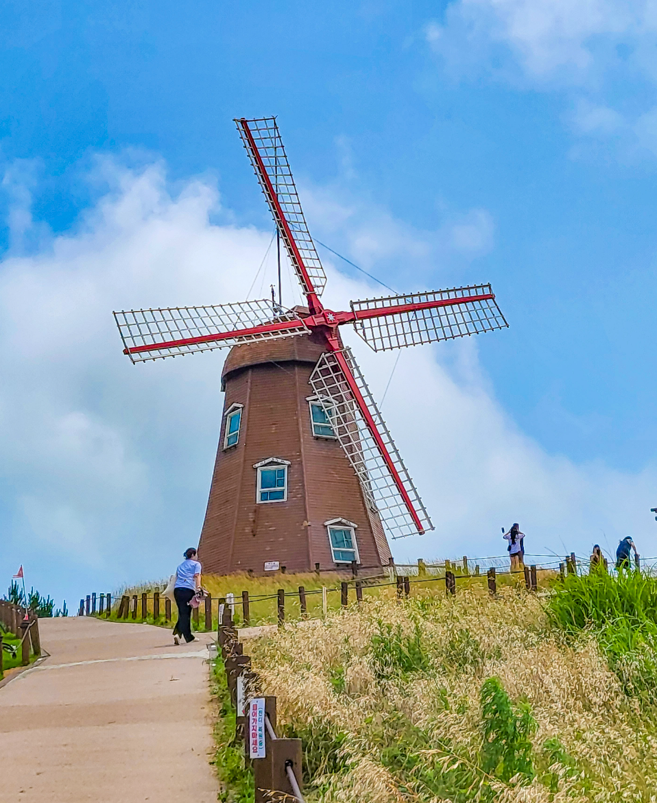 거제가볼만한곳 중 가장 대표적인 곳이 바로 바람의언덕입니다. 이름처럼 언덕 위에 서면 시원한 해풍이 불어오며, 멀리 탁 트인 남해 바다가 펼쳐집니다. 언덕 정상에는 커다란 풍차가 인상적으로 자리잡고 있어, 이국적인 분위기를 연출합니다.