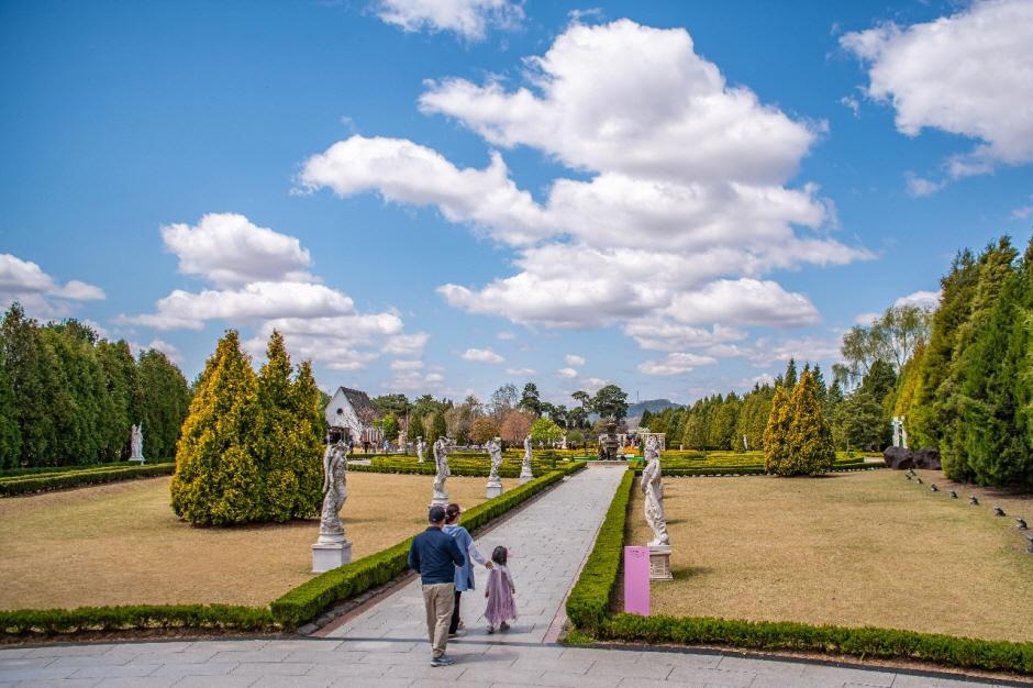 - 유러피안가든: 분수, 조각상, 아치, 장미터널 등 서양식 정원 조형물을 배치해 이국적인 느낌을 줍니다. 길게 뻗은 잔디길과 꽃길을 따라 걸으면 마치 해외 정원에 온 듯한 기분이죠.