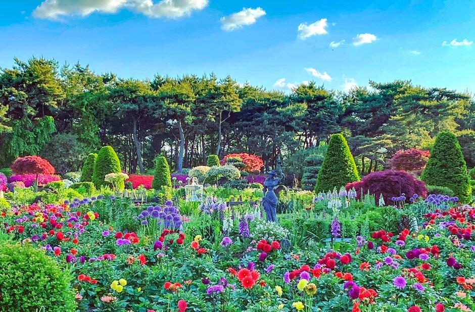 - 봄이면 튤립과 철쭉, 여름엔 수국, 가을엔 단풍과 국화 등 화려한 계절꽃을 다양하게 볼 수 있음