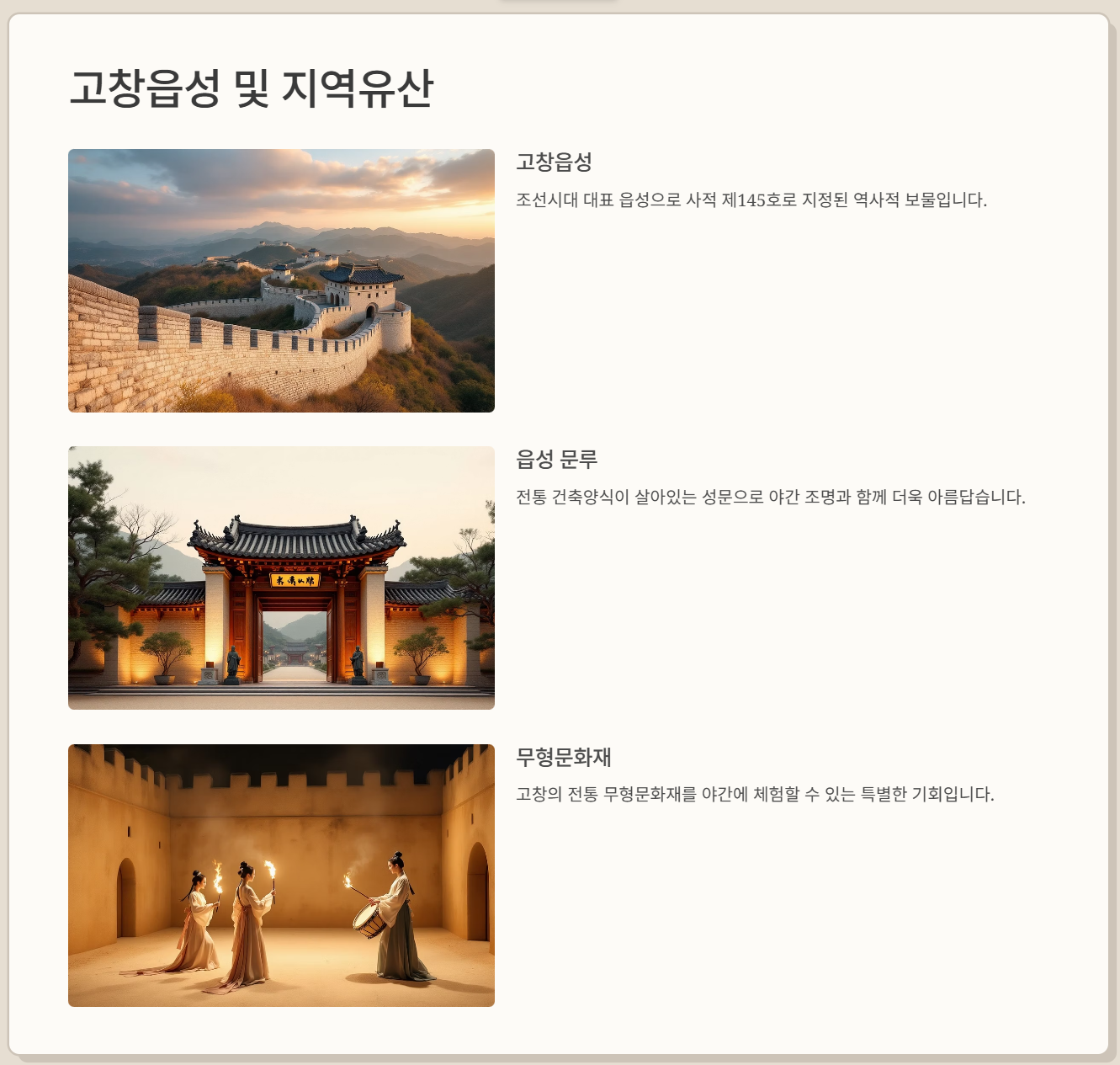 • 야사(夜史): 고창의 역사와 문화를 해설사와 함께 알아보는 시간입니다.