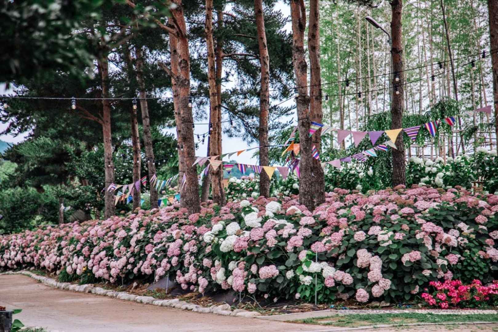 - 수국 외에도 다양한 초화류가 정원에 함께 조성되어 있어 사계절 감상 가능