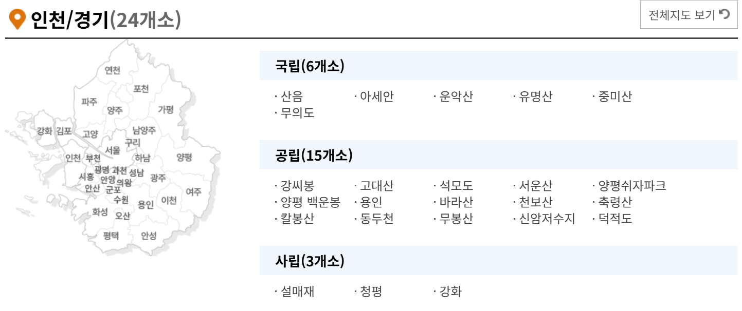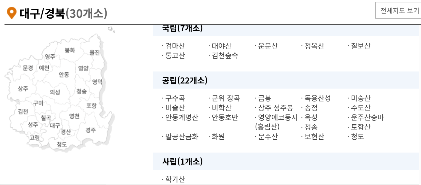 • 산음, 검마산, 김천숲속야영장은 매주 화요일 방역으로 휴무