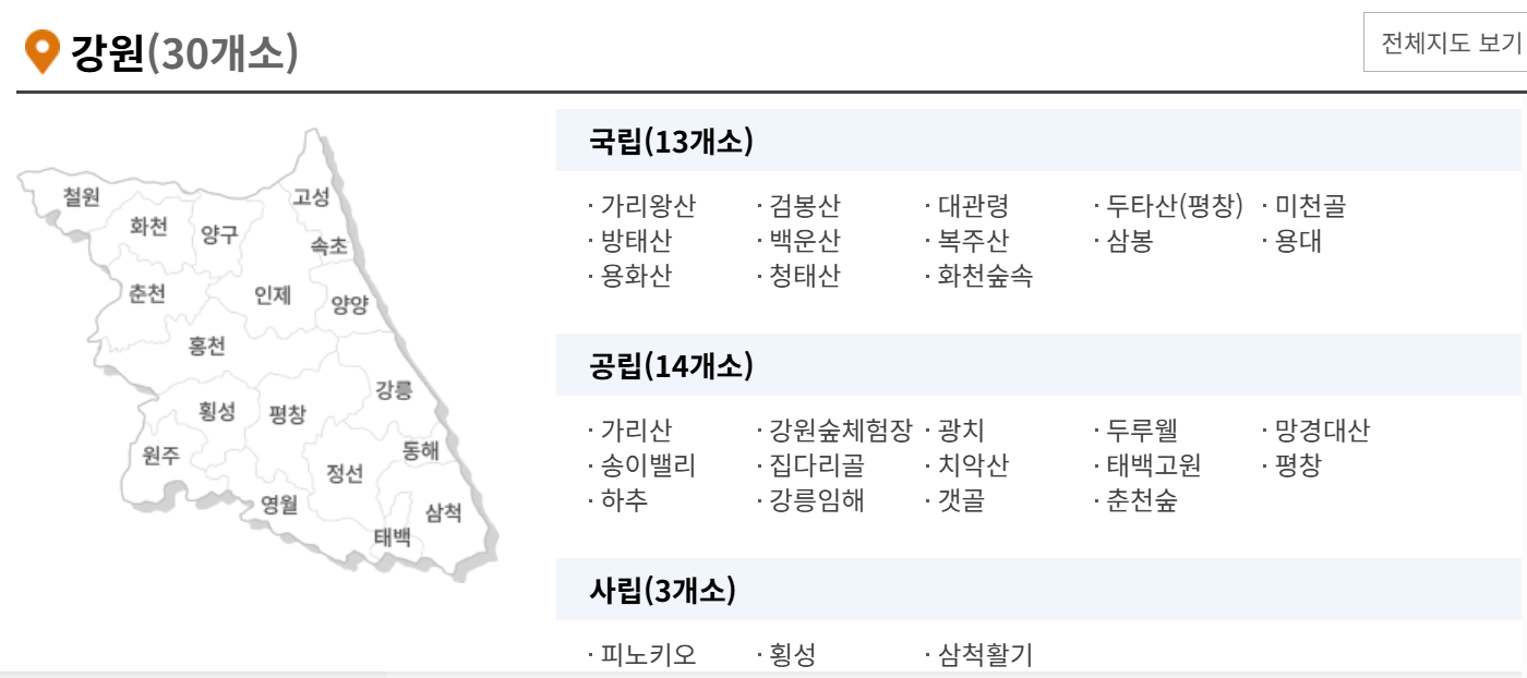 • 중미산·방태산 자연휴양림: 공사 및 예약제외 시설
