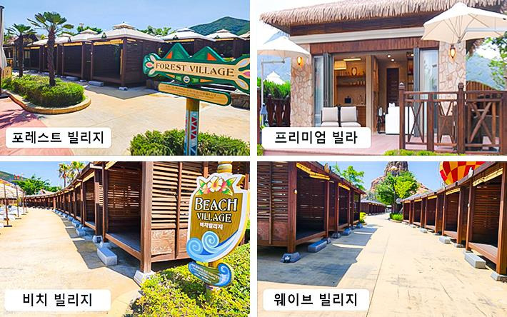 - 카바나 빌리지 종류: 비치 빌리지, 웨이브 빌리지, 포레스트 빌리지 래피드 빌리지 등