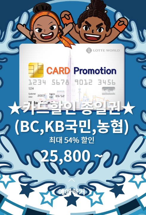 NH농협, KB국민, BC카드, 롯데월드카드(삼성) 등 제휴카드 사용 시 최대 57%까지 할인 가능