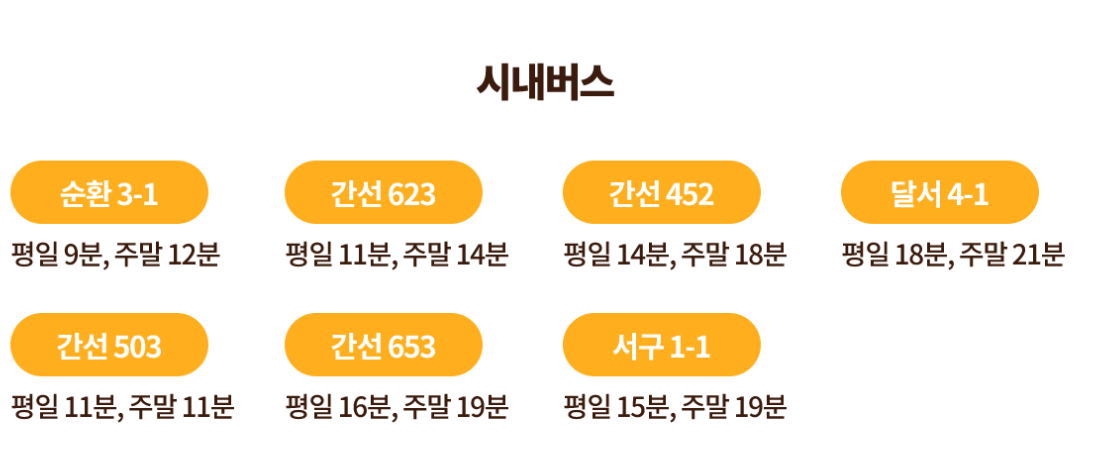- 대구 시내 중심지(동성로, 반월당)에서 택시로 약 15~20분 소요.