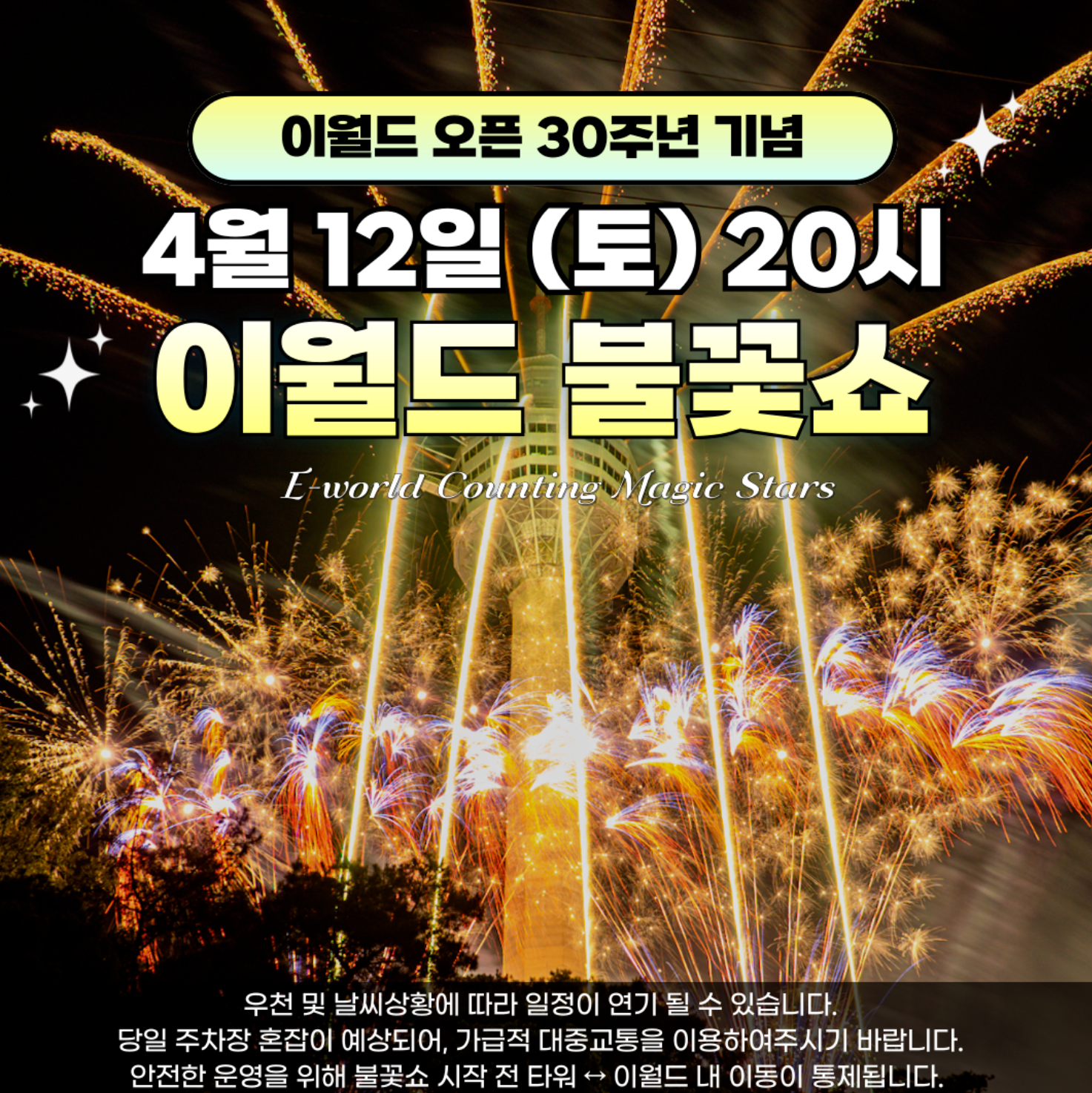 7. (주말) 불꽃놀이·특별 공연이 있다면 해당 시간 맞춰 관람 → 마무리