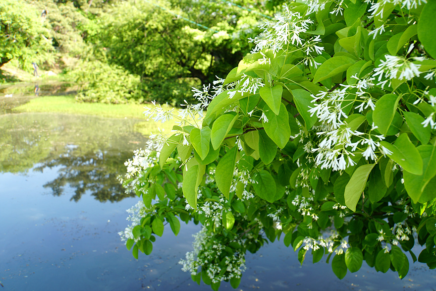 고요한 물 위에 비친 이팝나무 모습은 보는 사람마다 감탄을 자아냅니다. 인생샷 명소로도 인기예요. - 조용한 산책로
