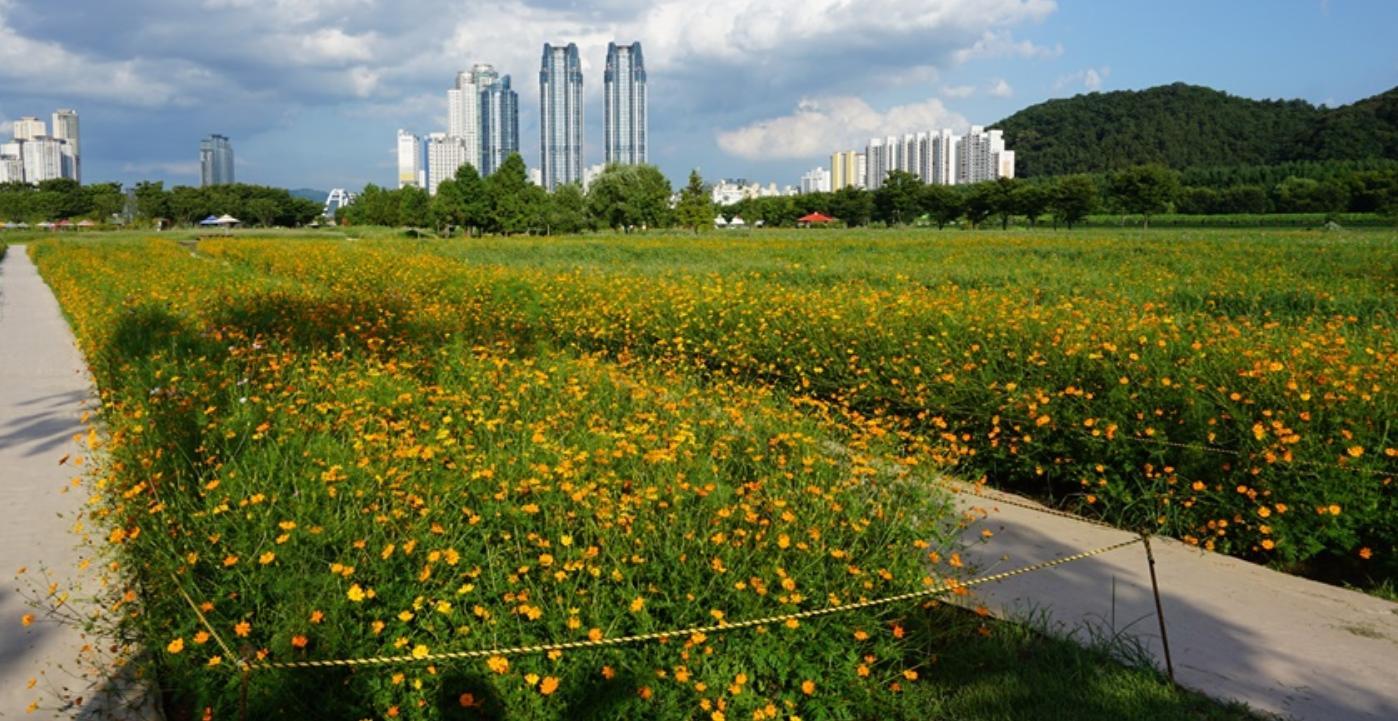 꽃밭이 워낙 넓어 멀리서도 잘 보이며, 마치 꽃의 바다를 걷는 듯한 기분을 느낄 수 있습니다.