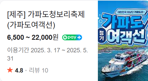 - 예매: 가파도 홈페이지 또는 현장발권