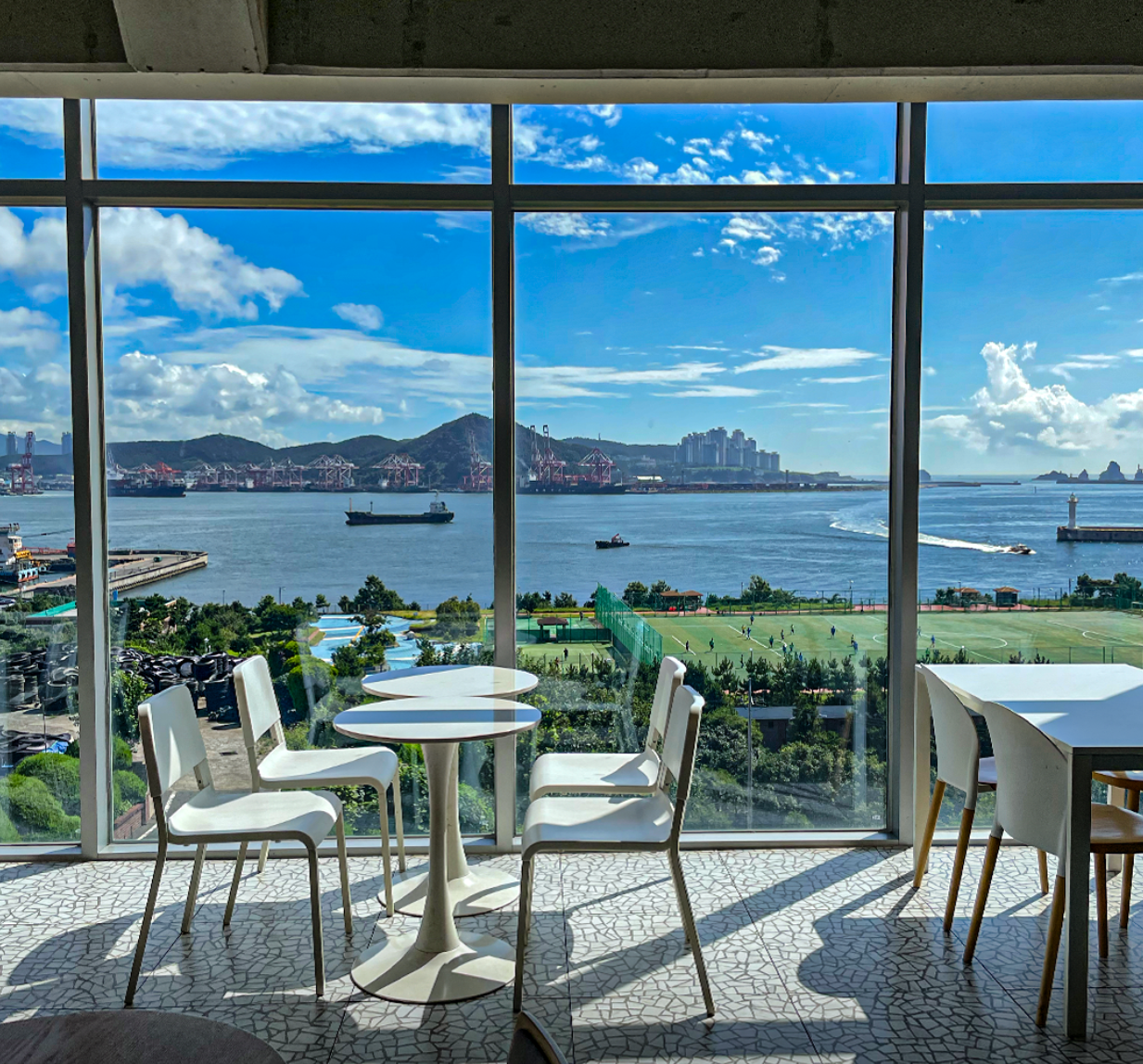 건물 전체가 카페로 운영되며, 각 층마다 콘셉트와 인테리어가 달라 골라 앉는 재미가 있습니다. - 탁 트인 바다 전망