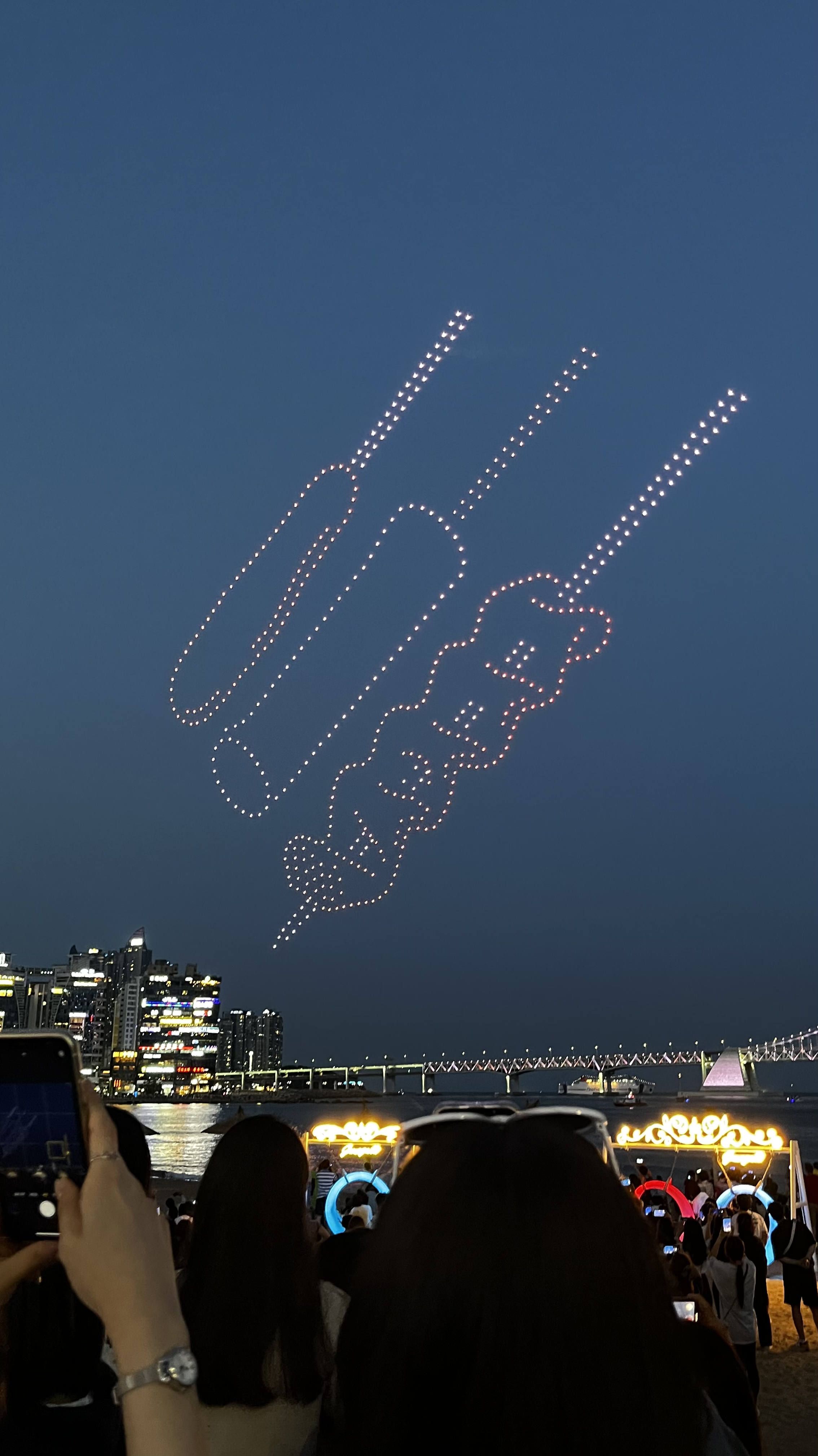 - 드론 쇼는 밤하늘에 펼쳐지는 조명 공연이라, 스마트폰이나 카메라 노출을 조정해야 제대로 담을 수 있습니다.