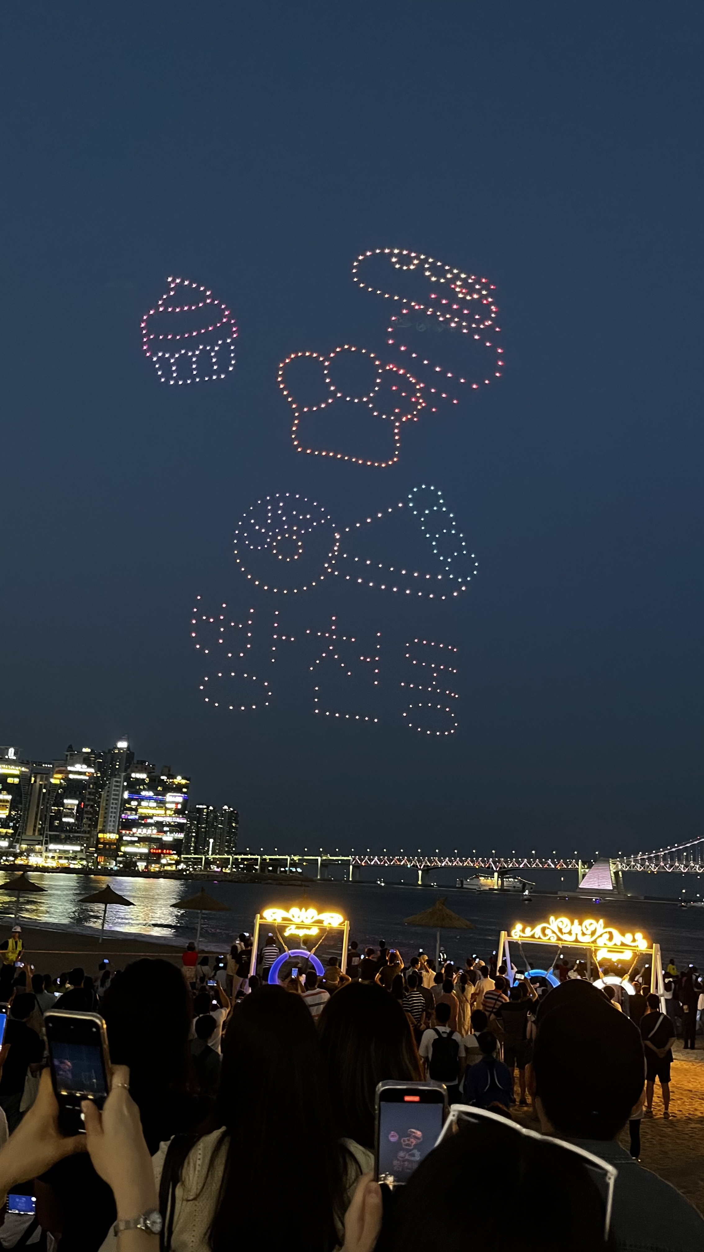 - 19:00: 드론 쇼 자리 잡기(백사장 쪽). 공연 시작까지 여유롭게 주변 구경
