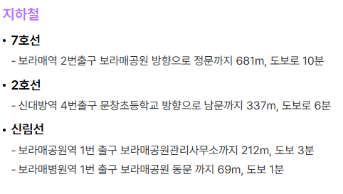 - 토·일·공휴일엔 대방역 ↔ 공원 왕복 152·461번 버스 5 분 간격.