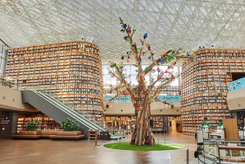 강남에 위치한 대형 복합 문화공간으로, 수만 마리의 해양 생물을 만날 수 있는 아쿠아리움과 감성 가득한 도서 공간인 별마당도서관이 함께 있어요.
