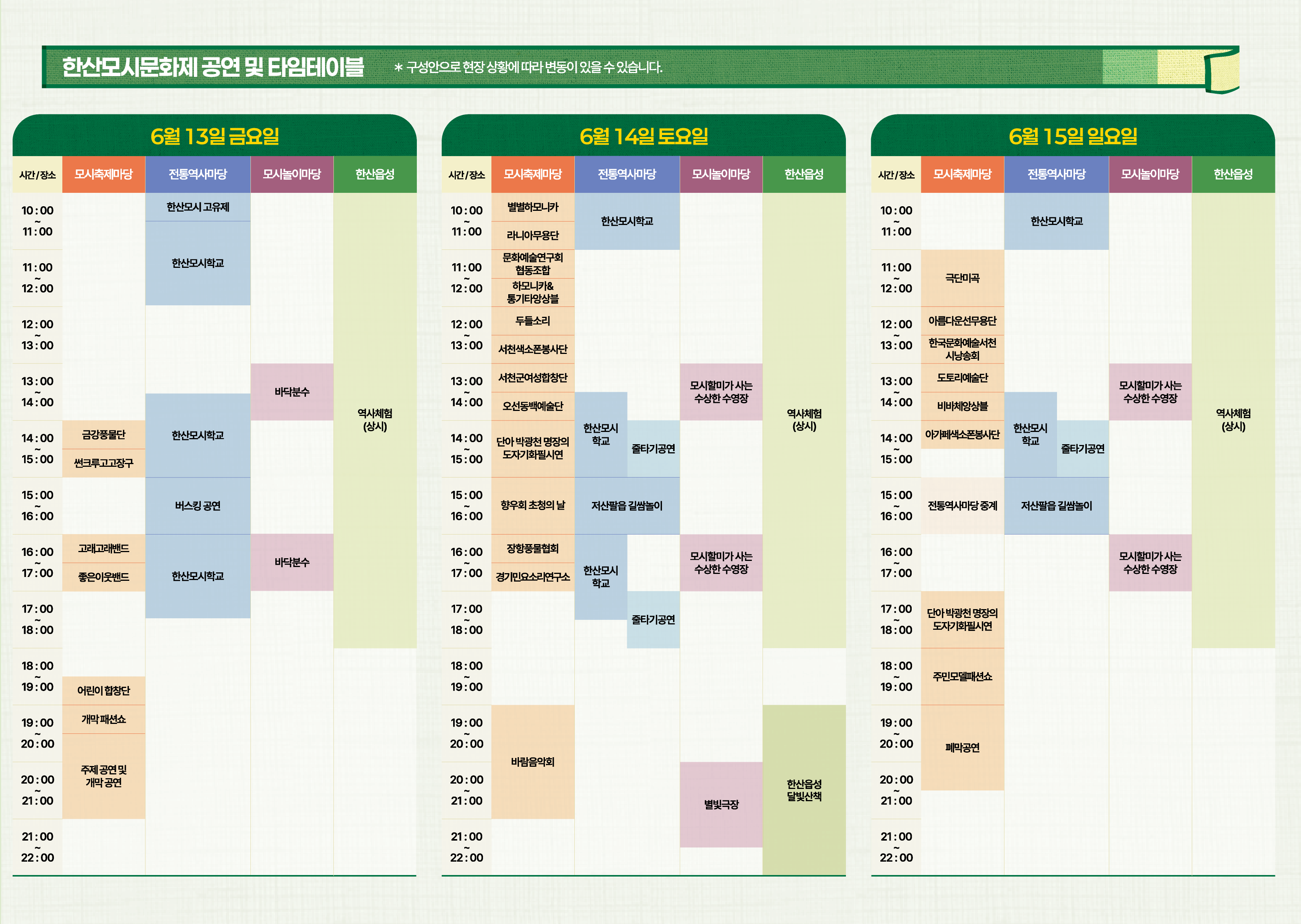 서천 한산모시문화제는 2025년 6월 13일부터 6월 15일까지 사흘간 개최됩니다. 행사는 충청남도 서천군 한산면에 위치한 ‘한산모시관’ 일원에서 진행됩니다. 해당 지역은 전통 모시짜기 기술이 이어져 온 대표적인 마을로, 유네스코 인류무형문화유산에 등재된 전통이 살아 있는 공간입니다.