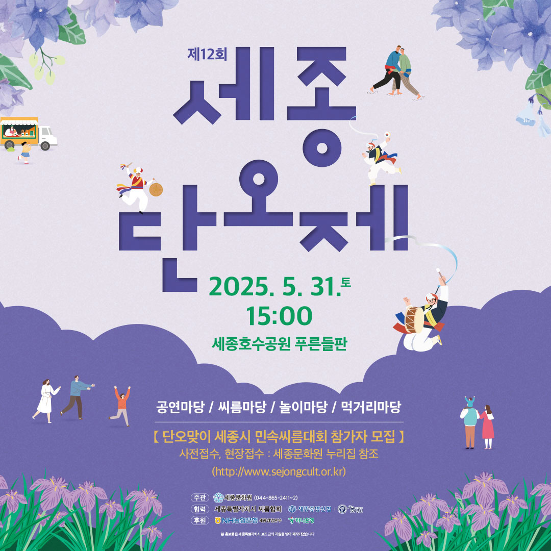 전통문화와 현대 감성이 어우러진 특별한 하루, 제12회 세종단오제가 2025년 5월 31일 세종호수공원에서 열립니다. 전통놀이와 공연, 체험 부스, 먹거리까지 온 가족이 함께 즐길 수 있는 프로그램으로 가득한 이번 축제는 세종시의 대표적인 봄 축제로 자리 잡았습니다. 하루 동안 진행되지만 알차게 준비된 구성 덕분에 시간 가는 줄 모르고 즐길 수 있는 ‘세종단오제’를 미리 알아두면 더욱 풍성하게 즐기실 수 있습니다.