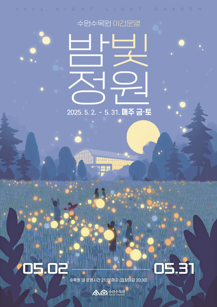 푸르른 정원에 은은한 조명이 더해지는 순간, 수원일월수목원이 색다른 야경 명소로 탈바꿈합니다. 5월 한 달간 금·토요일 저녁, 일월수목원에서는 야간개장 프로그램 ‘밤빛정원’이 펼쳐집니다. 낮과는 또 다른 매력을 느낄 수 있는 이번 야간개장은 수목원 최초로 진행되는 특별 프로그램으로, 다양한 문화 행사와 체험 활동까지 더해져 시민들에게 새로운 휴식의 장을 제공합니다.