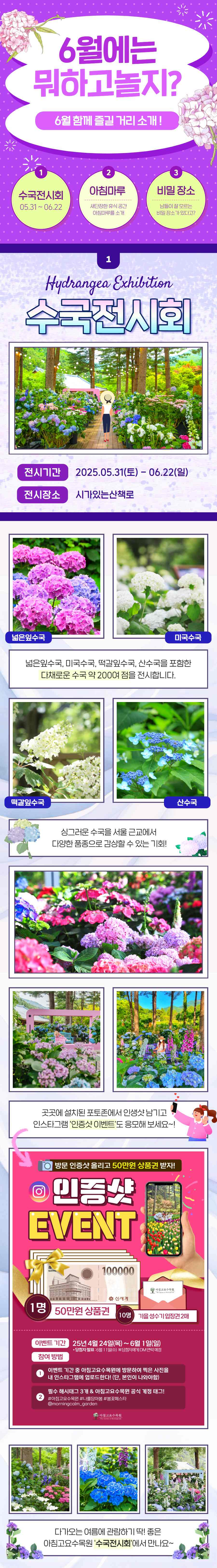 - 전시 규모: 기존 200점 + 신규 1,500분 수국 추가
