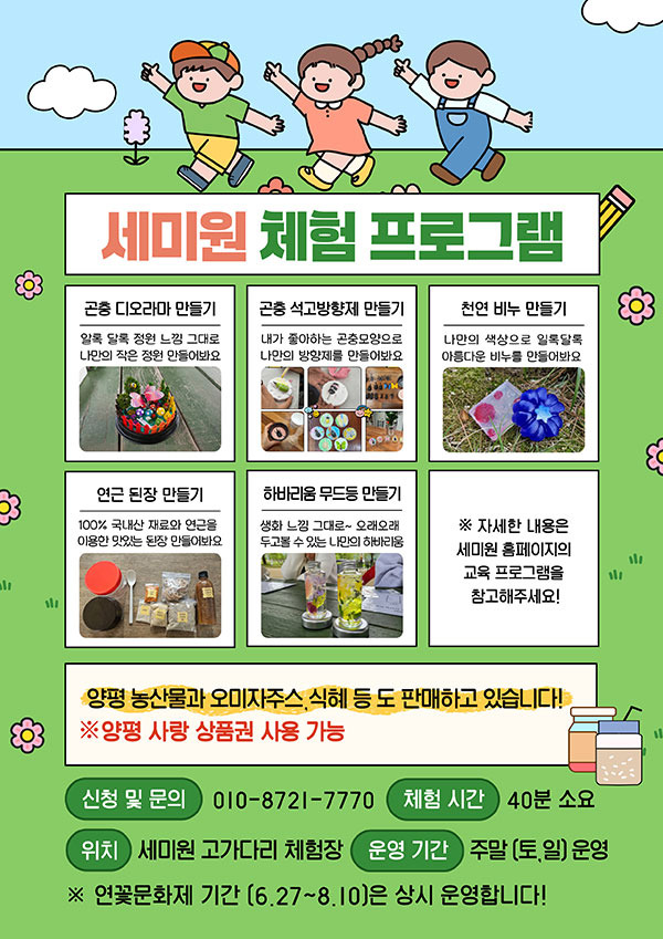 - 아로마 향수 만들기, 어린이 연잎 부채 그리기 등