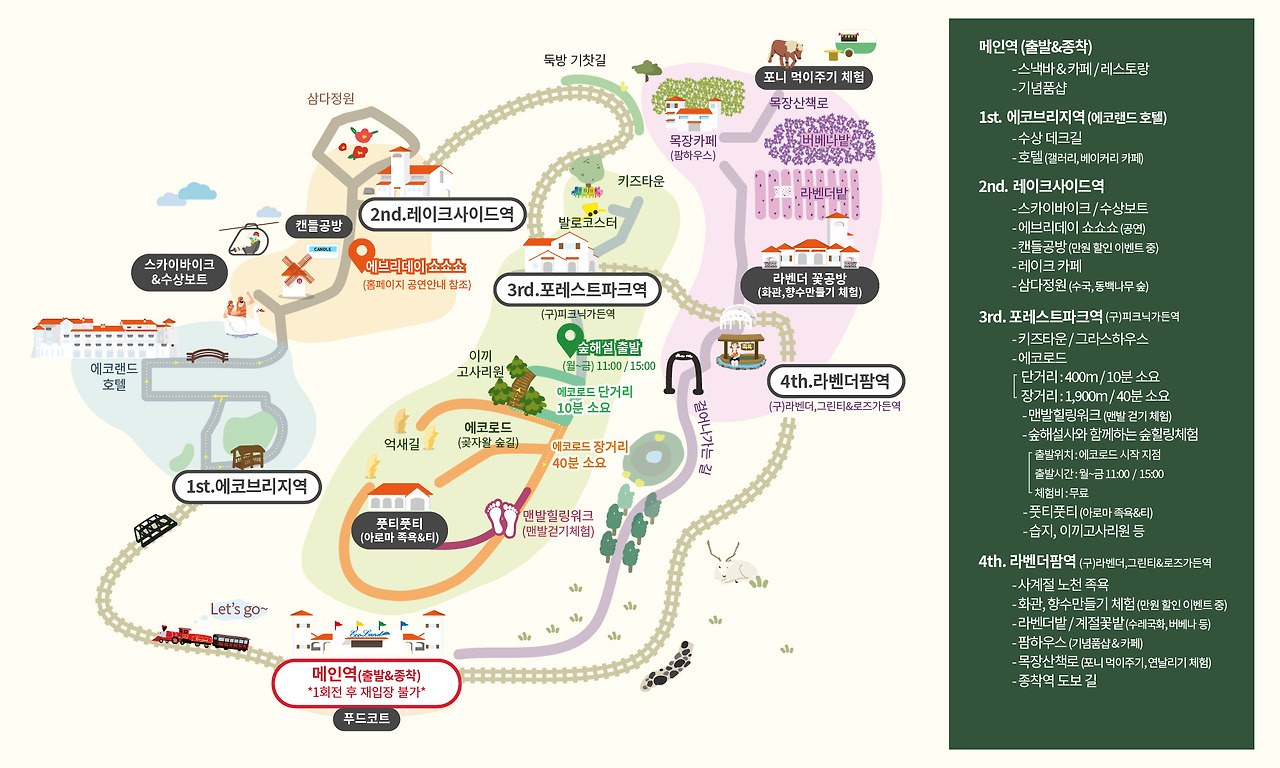 제주에서 자연을 가장 가까이에서 느끼고 싶다면 에코랜드 테마파크는 최적의 선택이 될 수 있습니다. 숲속 기차와 여유로운 산책길, 아이와 함께하는 즐거운 체험까지 모두 누릴 수 있는 이곳에서 잊지 못할 하루를 만들어보시길 바랍니다.