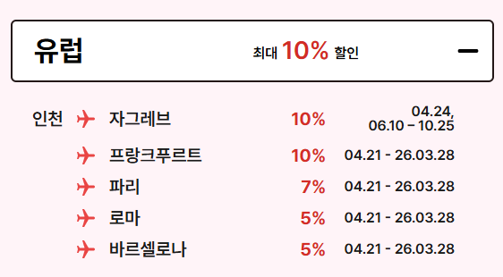 - 파리: 7% 할인, 2025.04.21 ~ 2026.03.28