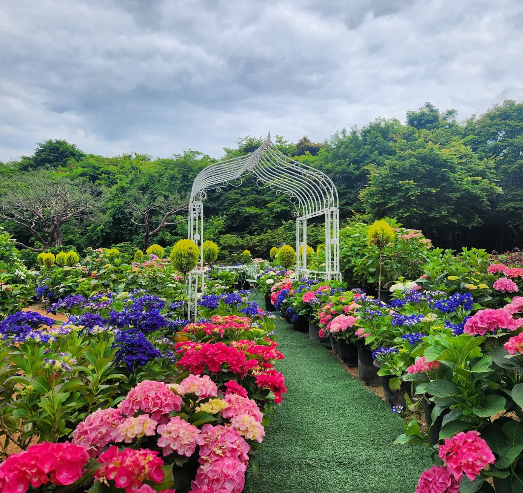 - 수국 아치길 – 알록달록한 수국 아래 아치형 터널이 조성되어 있어 가장 인기 있는 포토 스팟입니다.