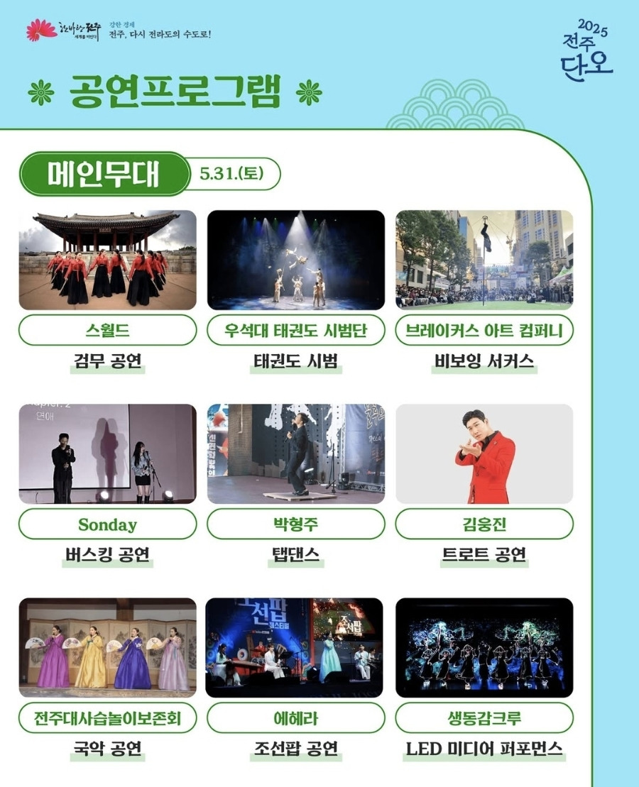 - 주무대 공연 : 전주시립국악단, 탈바꿈놀이, LED 퍼포먼스