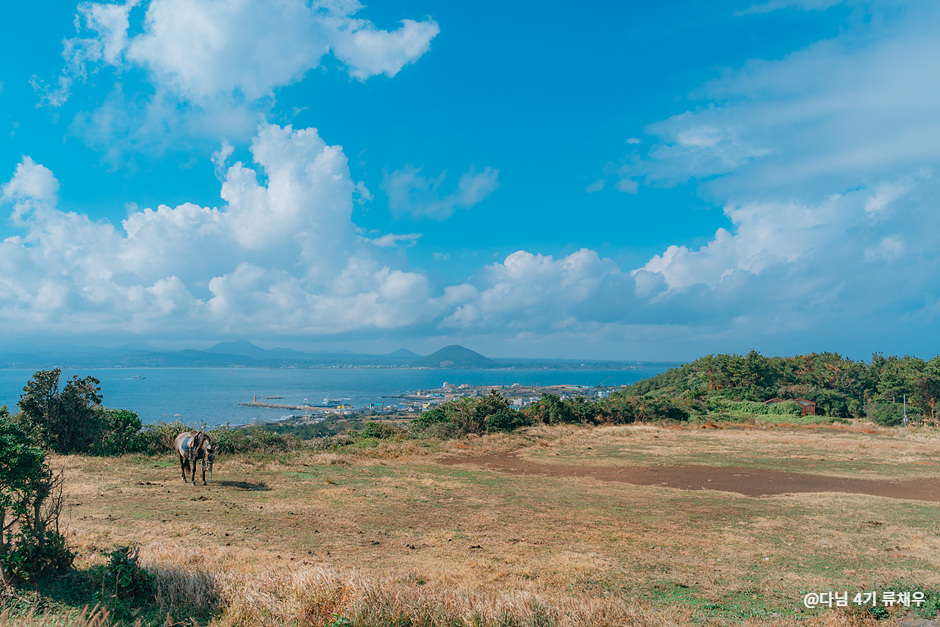 ‘소의 머리’ 모양을 닮았다고 하여 ‘우도’라는 이름이 붙은 만큼, 이곳은 우도의 형태를 조망하기에 좋은 위치입니다. 정상 근처에는 편의시설과 승마 체험장도 있어 다양한 활동을 함께 즐길 수 있습니다.