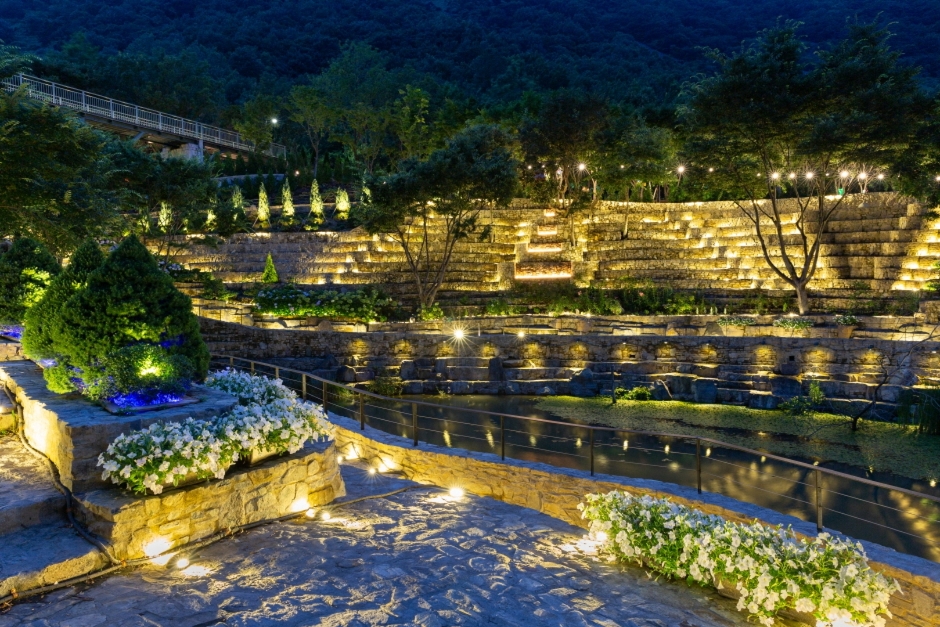 이번 축제의 핵심은 바로 약 2만 5천㎡에 이르는 수국 정원입니다. 숲속의 자연과 조화를 이루는 다양한 수국 품종들이 식재되어 있어 동화 속 풍경처럼 환상적인 분위기를 자아냅니다. 특히 수국 아치길, 테마 정원, 벽화 배경 구역 등은 포토존으로도 인기가 높습니다.