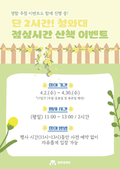 다만 예약 및 보안검색 등 절차가 있으니, 공식 사이트(https://www.opencheongwadae.kr/mps)를 통해 꼼꼼히 준비하시면 더욱 편안하고 뜻깊은 관람이 가능할 거예요.