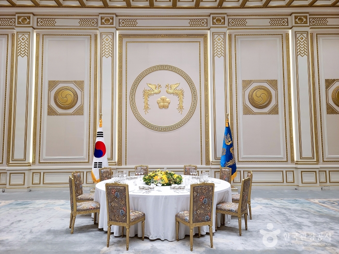- 영빈관은 해외 국빈을 위한 연회장 겸 귀빈 접견실로, 호화스럽고 한국적 디자인이 돋보임