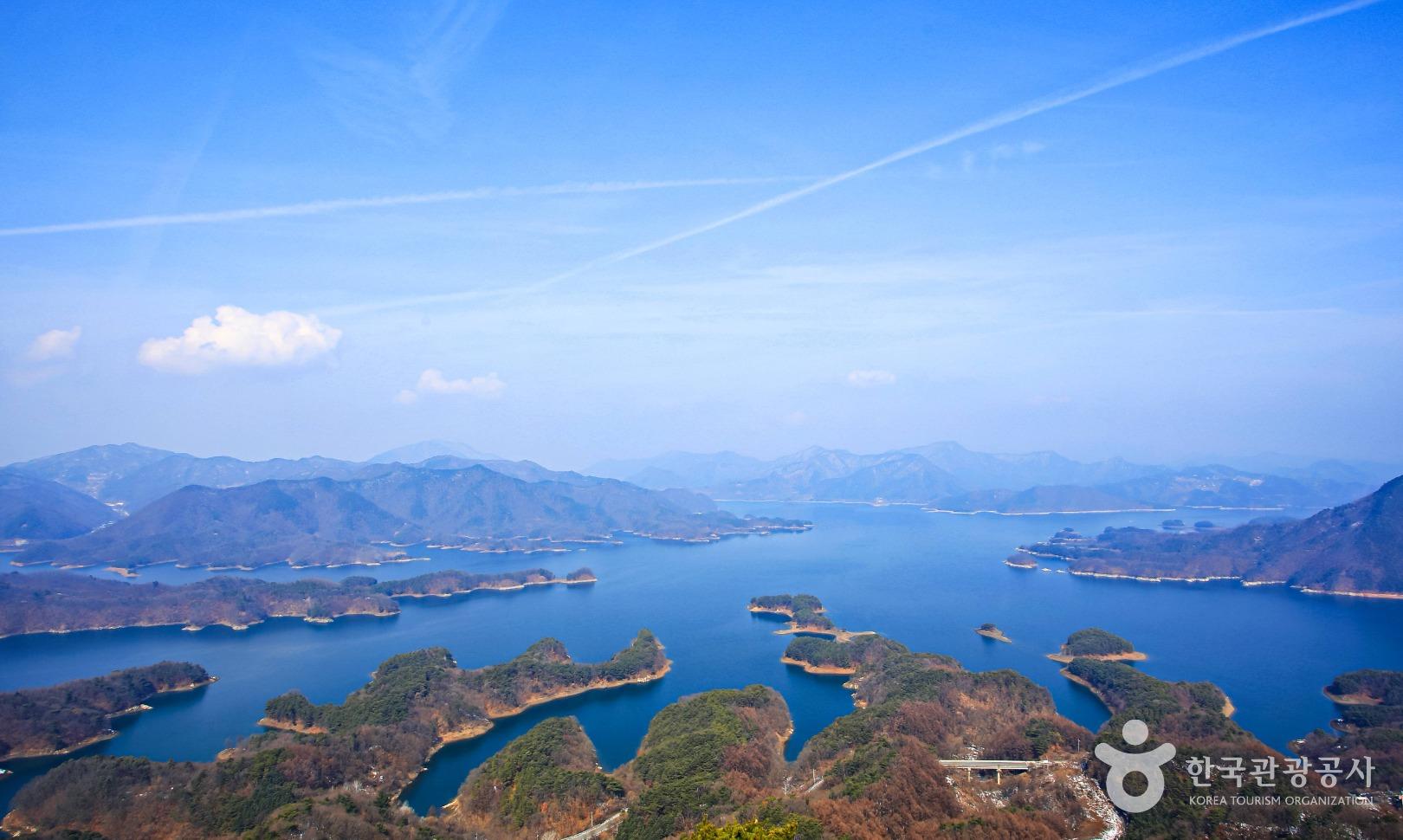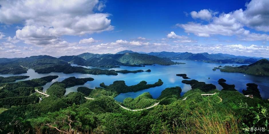 충주 여행지 중 가장 유명한 명소, 충주호는 대규모 인공호수로 드라이브와 풍경 감상에 최적화된 장소입니다. 청풍호라고도 불리며, 청풍호반도로 이어지는 길은 벚꽃이 만개하는 봄철에 특히 아름답습니다.