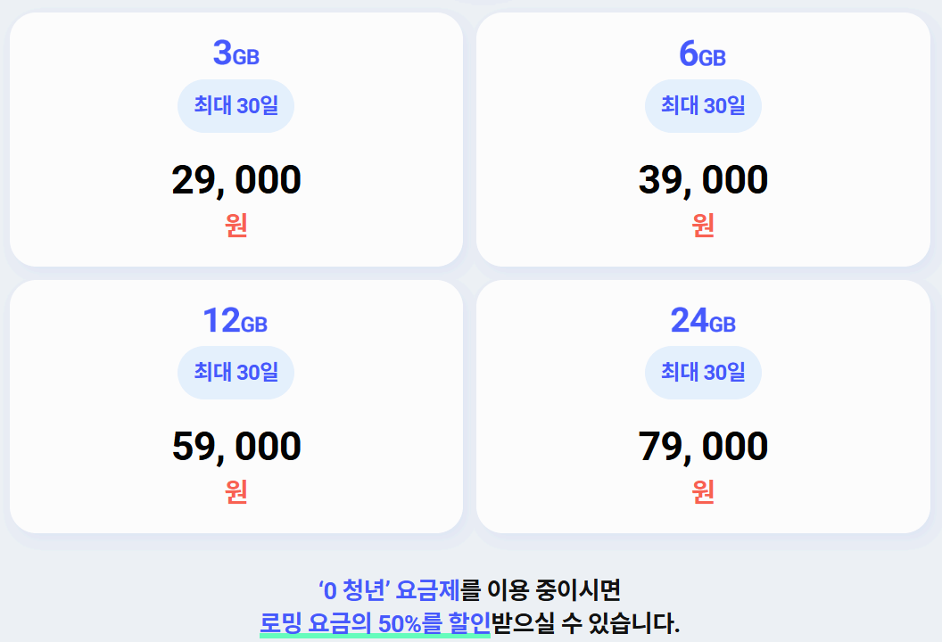 | 로밍 테이터 | baro 1GB 뮤료 충전권(1회) |
