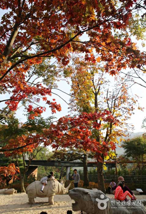 9월 말부터 시작되는 단풍 시즌은 매년 예약 전쟁이 펼쳐질 정도로 인기입니다. 단풍나무, 느티나무, 은행나무, 자작나무가 물들며, 온 숲이 붉은 빛으로 환해집니다. 모노레일에서 내려다보는 산 전체의 풍경은 마치 자연이 만들어 낸 거대한 예술작품 같고, 낙엽이 흩날리는 길을 걷는 기분은 특별한 힐링 그 자체입니다.