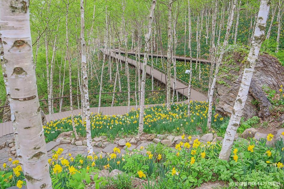 3월부터 피기 시작하는 수선화와 복수초, 4월의 산수유와 철쭉, 5월의 이팝나무와 작약까지. 겨울을 이겨낸 생명들이 연이어 피어나는 풍경은 도시에서는 쉽게 볼 수 없는 감동을 줍니다. 특히 철쭉 군락지 주변 산책로는 그 자체로 봄의 풍경화처럼 펼쳐집니다.