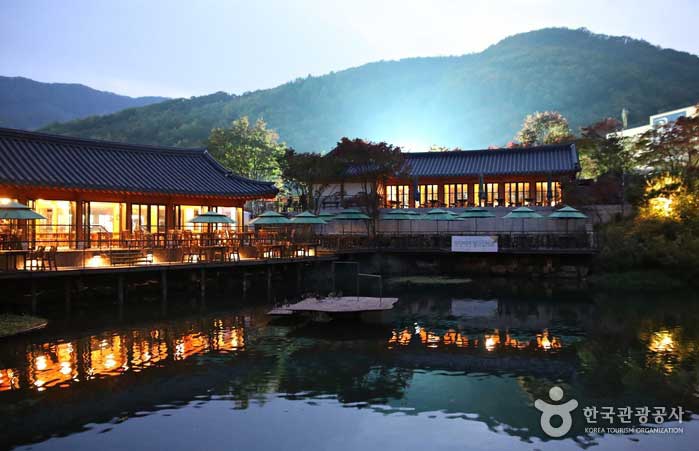 화담채는 화담숲 내 위치한 전통 한옥 스타일의 쉼터 겸 식음 공간입니다. 푸드코트 형태로 간단한 식사와 음료를 판매하며, 한식 위주의 메뉴가 주를 이룹니다.