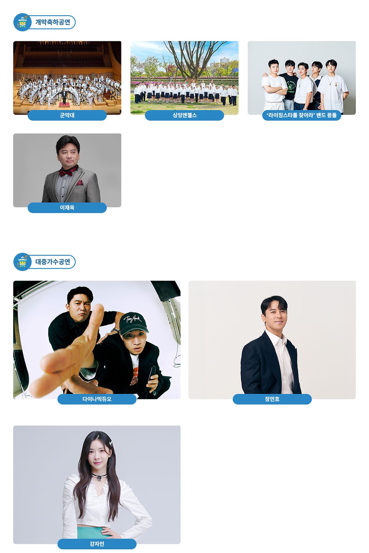 - 다이나믹 듀오, 장민호, 강자민 등 대중가수