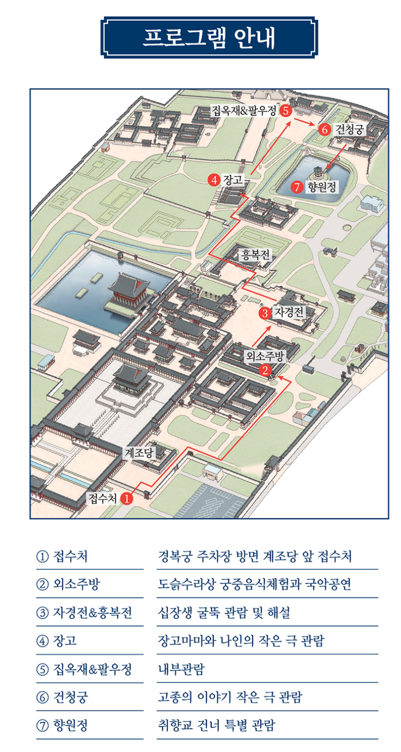 - 주요 전각 야간 투어 (근정전, 수정전, 강녕전, 교태전, 아미산 등)