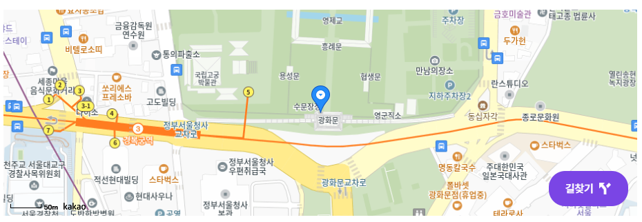 - 5호선 광화문역 2번 출구에서 도보 약 10~15분 정도.