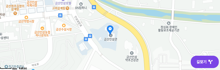 - 시외버스: 대전 복합터미널 → 금산 (1시간 이내)