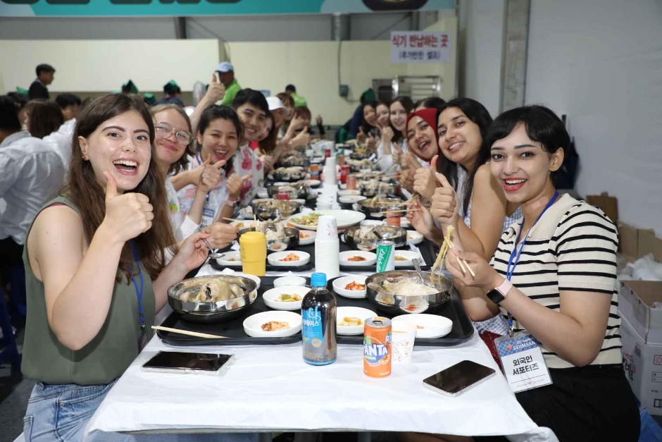 매년 수천 명이 줄을 서서 기다리는 삼계탕 무료 시식은 금산 인삼과 국내산 닭으로 만든 고품질 보양식입니다.