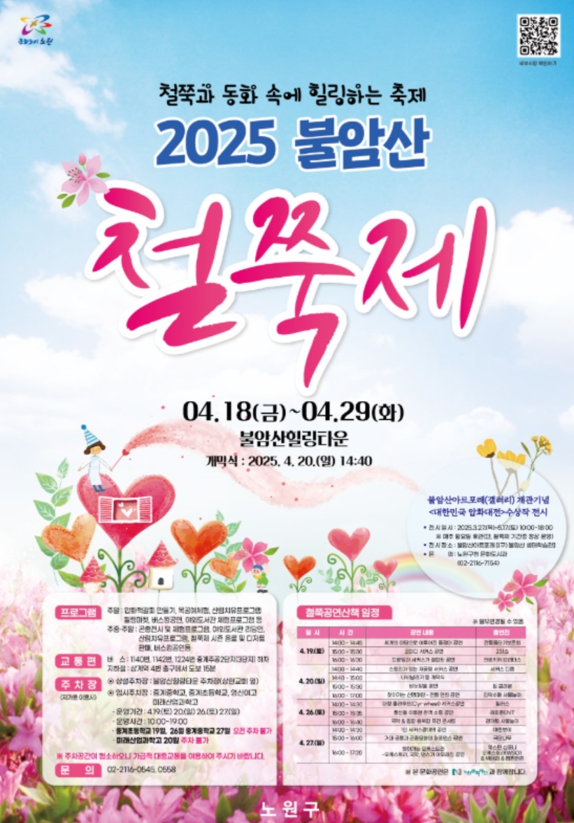 이번 2025년 철쭉축제는 꽃구경은 물론, 목공 체험·숲 테라피·버스킹까지 다양하게 준비되어 있어 하루 나들이 코스로 제격입니다. 지금부터 불암산 철쭉축제의 모든 것을 쉽고 알차게 알려드릴게요! 🌸⛰️