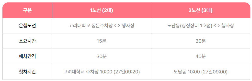- 자가용 이용 시: 세종시 조치원읍 문화정원 주차장(임시 확대 운영 예정)