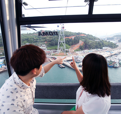 돌산과 자산을 잇는 해상 케이블카. 바다 위를 건너는 짜릿한 경험을 할 수 있습니다. 야간 탑승도 추천!