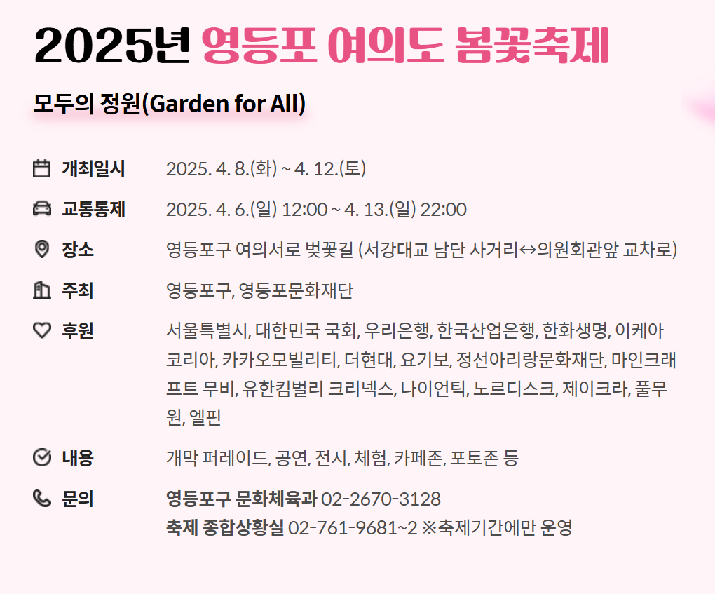 7. 2025년 여의도 벚꽃축제 주요 이벤트 & 체험 프로그램