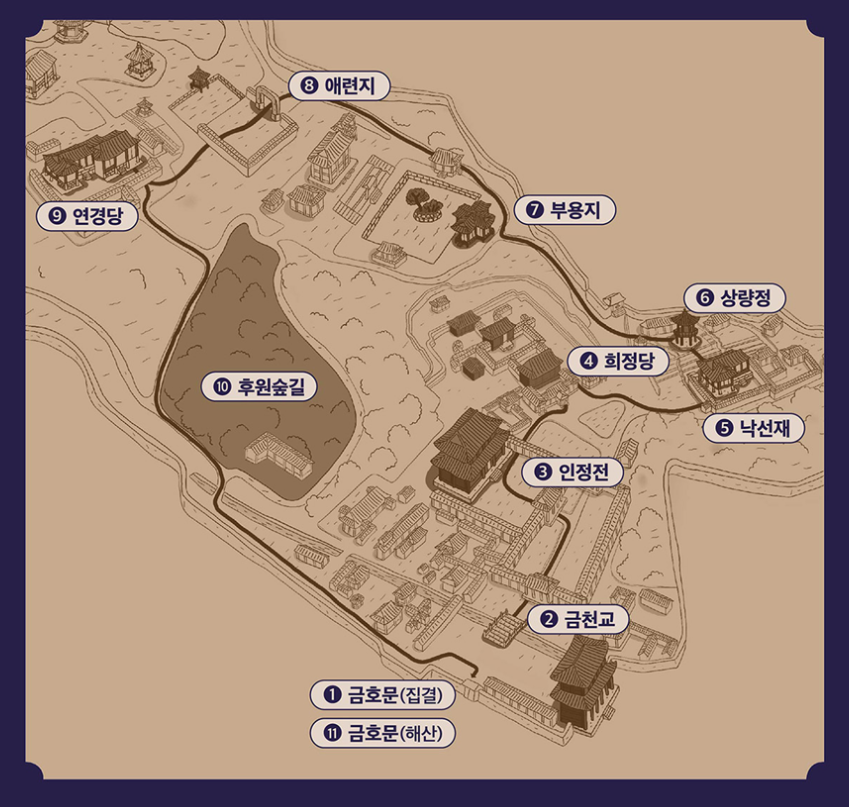 - 부용지, 주합루 등 후원의 대표 명소 중 일부를 거닐며, 조용한 연못과 정자의 분위기를 음미.